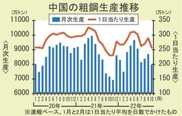 中国の10月粗鋼生産/1日当たり今年最少レベル