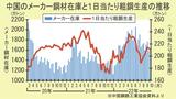 10月上旬の中国粗鋼生産/減少も高位続く/流通在庫は4カ月ぶり増加