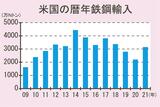 米国鉄鋼輸入、22年も3000万Nトンペース。市況高値でアジア材増加、「232条」見直しも日欧材は変わらず