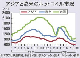 海外ホット市場、各国で減産拡大。市況600ドル近辺で底ばい、採算面で限界に