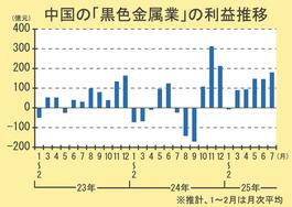 中国鉄鋼業の利益/7月は今年最高