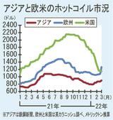 欧州ホット市況、米を上回る/ウクライナ危機で異例の逆転