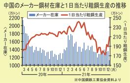 中国の流通鋼材在庫/12月下旬も減少