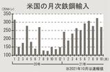 米国鉄鋼輸入/10月、79%増の271万Nトン/ホットコイルが大幅増