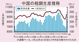中国の12月粗鋼生産/「減産達成・帳尻合わせ」で急増/4カ月ぶり8000万トン台に暦年では6年ぶり前年割れ