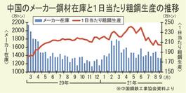 中国の粗鋼生産/9月上旬、5%減/メーカー在庫も減少続く