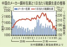 中国鋼材市況/ホット・異形棒、7カ月ぶり安値/先物価格も10カ月ぶり安値
