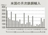 3月の米国鉄鋼輸入/229万Nトン、2カ月連続増/市況「独歩高」でじわり増加