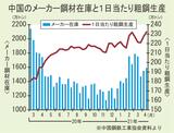 1日当たり粗鋼生産/中国4月中旬、過去最高/メーカー在庫は小幅増