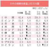 世界粗鋼3カ月ぶり増加/3月、3%増の1億6610万トン/中・印増加