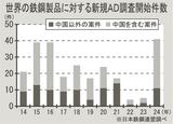 世界の鉄鋼製品AD新規調査/24年は過去最多の41件/対中案件は初の30件台に