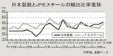 日鉄とJFEの鋼材輸出比率/7~9月期は上昇/内需低迷反映、下期は低下の公算