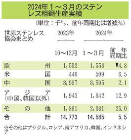 1~3月の世界ステンレス粗鋼/5.5%増の1459万トン