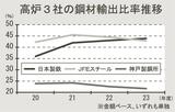 高炉の23年度鋼材輸出比率/円安進行も日鉄のみ上昇/神鋼は15年ぶり低水準