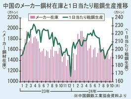 中国10月中旬の1日当たり粗鋼生産/6月上旬以来の増加/CISAまとめ