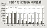 中国の鋼板類輸出/23年は6000万トン際に/棒鋼は5年ぶり1000万トン台