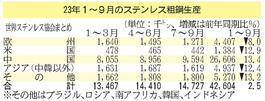 1~9月の世界ステンレス粗鋼/2.5%増の4260万トン/中国のみ増