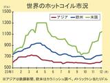 世界のホットコイル市況/米市場、再び〝別世界〟/メトリックトン換算で1100ドル台半ば/メーカー再編で価格形成力高まる/「USスチール買収」でさらに寡占化も