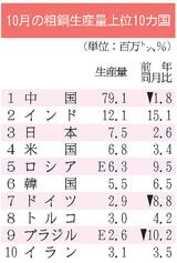 10月世界粗鋼/微増、1億5000万トン/インドは15%増