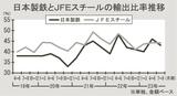 日鉄とJFEの鋼材輸出比率/円安進行もほぼ前年並み/海外市況低迷を反映/7~9月期