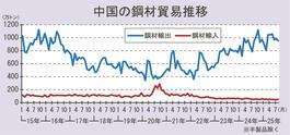 8月の中国鋼材輸出/2%増の951万トン/伸び鈍化も26カ月連続増