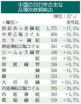 中国の22年品種別鉄鋼輸出/ホット、シームレス鋼管が増加
