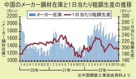 中国のメーカー鋼材在庫/調整進展鮮明に/12月上旬、前月上旬比138万トン減