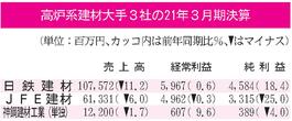 高炉系建材大手3社の21年3月期/全社減収、2社経常増益/中小建築案件が減少
