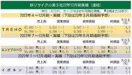 鉄リサイクル業3社の22年12月期/鉄スクラップ市況乱高下決算期間で収益に格差/廃車の発生減なども影響