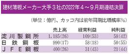 建材薄板メーカー大手3社/4~9月期全社増収増益/品種構成・販価の改善進展