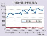 中国鋼材輸出/9月4カ月ぶり1000万トン突破/鉄鉱石輸入は月間最高
