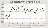 11月の転炉スクラップ消費原単位/134・8キログラムに小幅増/2カ月連続前月比プラス消費量、2カ月ぶり70万トン割れ