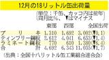 12月の18リットル缶出荷/1.7%減の1103万缶