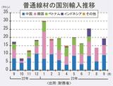 9月の普通線材輸入/5カ月ぶり増、1.9万トン