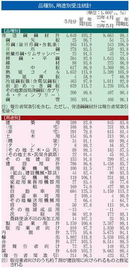 普通鋼鋼材国内受注/5月、21カ月連続で減少
