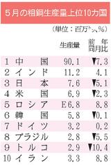 5月の世界粗鋼生産/2カ月連続減、1億6160万トン/中国=7%減、EU=11%減