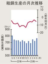 全国粗鋼、17カ月連続減/5月は765万トン、需要に力強さ欠く