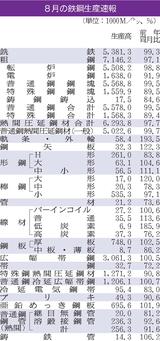 東鉄連厚板部会の販売量調査/8月、7カ月ぶり3万トン割れ