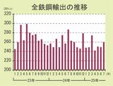 7月鉄鋼輸出、9%減の260万トン/4カ月連続減、米向けは35%増