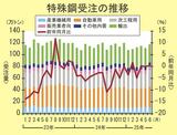普通鋼鋼材国内向け受注/6月、1年ぶり増加/水準自体は低迷/製造業向けが増勢
