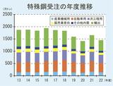 22年度特殊鋼受注1452万トン/12%減、車関連など低下