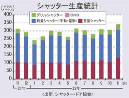 11月のシャッター生産/9%増の34万1300平方メートル/重量製品は6カ月連続2桁増