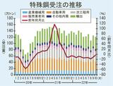 10月の特殊鋼受注/13カ月連続減3%減の121万トン/車需要低調、国内向けは8%減