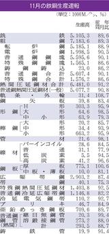 全国粗鋼、11月も減少/718万4000トン、11カ月連続のマイナス