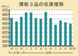 10月末の薄板3品在庫/2カ月連続減、439万トン/車向けなど需要回復基調