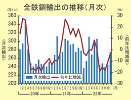 11月の鉄鋼輸出/5カ月連続前年割れ/暦年で20年並み3200万トン程度/EU向けは過去2番目の高水準