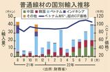 8月の普通線材輸入/今年最多の4万1000トン超/輸入価格は6カ月ぶり下落