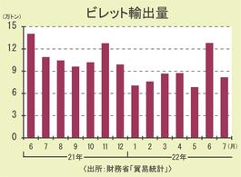 7月のビレット輸出/25%減の8万1700トン/台・中向け減