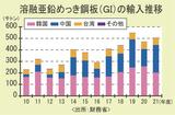 21年度の亜鉛めっき鋼板輸入/7%増の50万6000トン/19年度に次ぐ高水準