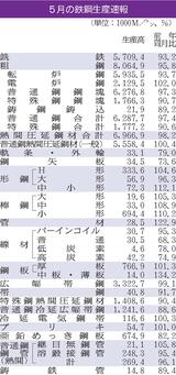 5月の全国粗鋼/5カ月連続減、806万トン/車向け需要停滞続く